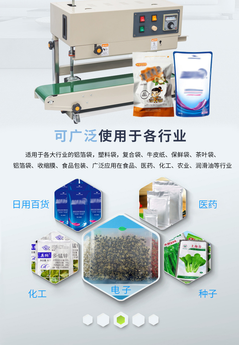 • 適用范圍廣:可用于各種塑料薄膜、鋁箔復合膜等包裝材料的封口,適用于不同行業和產品的包裝需求,如食品、醫藥、日化、五金等25.