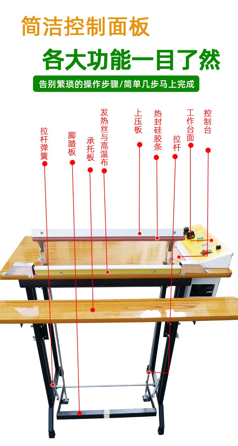 腳踏封口機使用方便,操作人員雙手可以自由地操作包裝材料,這對于形狀不規(guī)則、大小不同的物品包裝尤為方便
