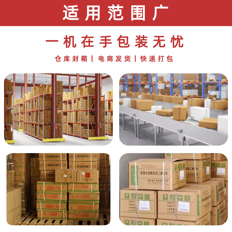 - 多種包裝物:適用于各種類型的箱包、紙箱、塑料箱、木箱等包裝物的封箱和打包,能夠滿足不同行業(yè)、不同產(chǎn)品的包裝需求.
