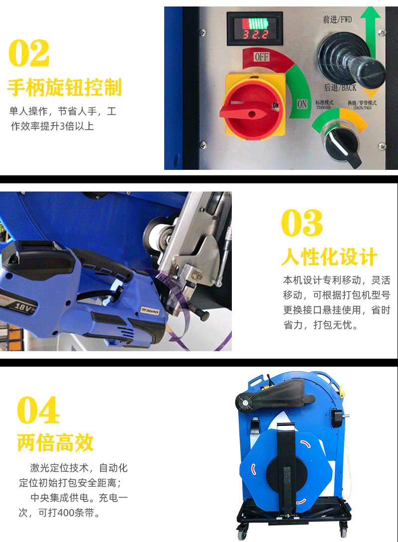 - 簡單易懂的操作方式:操作按鈕設計簡潔直觀,通常包括收緊、熔接和切斷等功能按鈕。操作人員經過簡單的培訓就能快速掌握操作方法,輕松控制打包機完成各個打包步驟。這種簡單的操作方式降低了對操作人員的技能要求,提高了工作效率和打包質量。