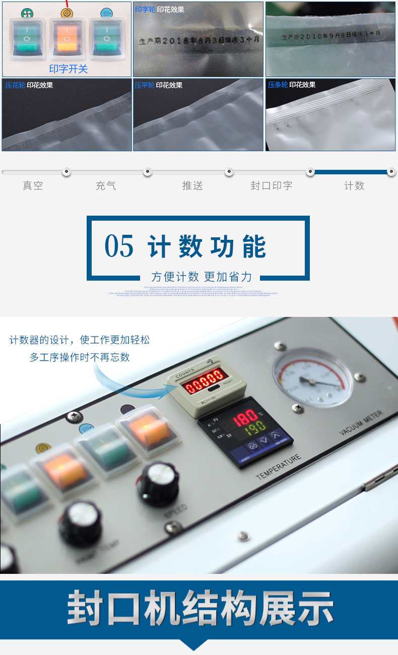 - 包裝質(zhì)量穩(wěn)定:精準的真空度控制與熱封技術(shù),確保每個產(chǎn)品的包裝都能達到均勻的真空效果,封口嚴密、規(guī)整,有效防止產(chǎn)品氧化、受潮、變質(zhì),有力保障產(chǎn)品品質(zhì)。