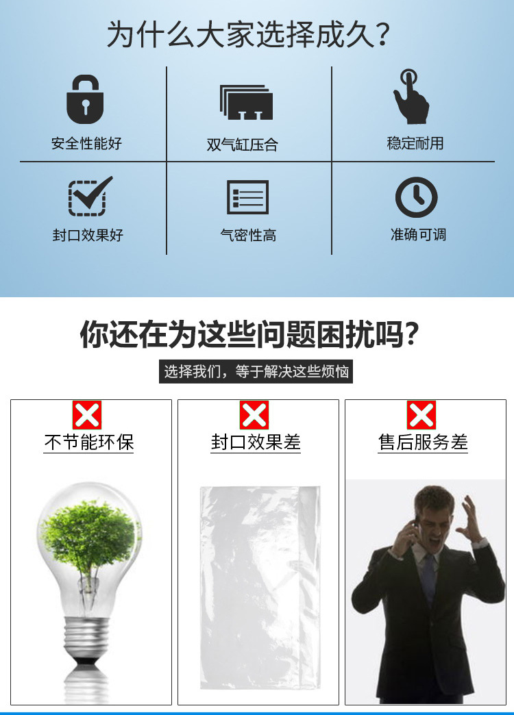 - 電子元件包裝:電阻、電容、電感等電子元件,需要防靜電、防潮的包裝。臺式氣動封口機可以對防靜電包裝袋進行封口,保護電子元件不受外界環境的影響,確保其性能穩定。