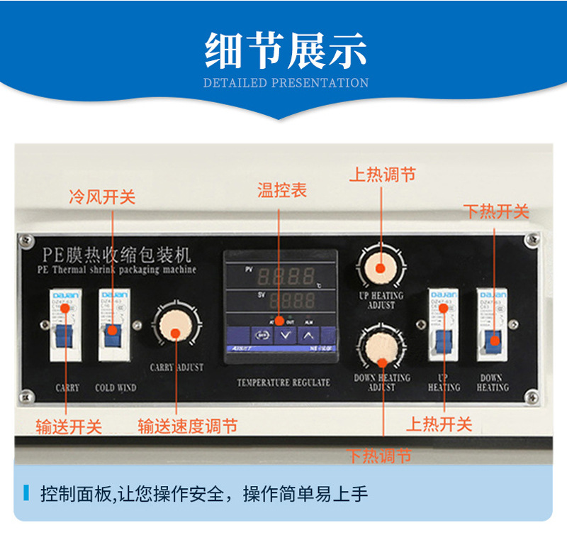 其工作原理是利用加熱元件產(chǎn)生的高溫,讓熱收縮膜受熱后發(fā)生收縮,從而緊密地包裹在產(chǎn)品表面。