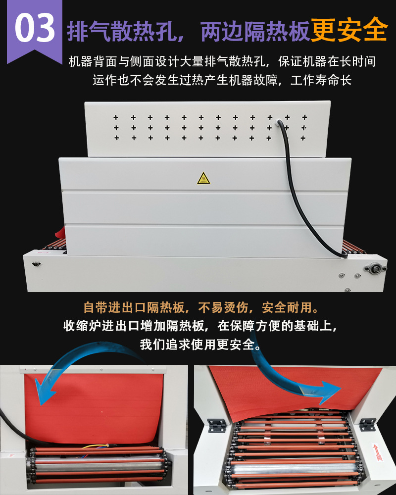 - 加熱系統:包括加熱元件、溫度控制器等,負責產生熱量并控制加熱溫度,確保收縮膜能夠在合適的溫度下進行收縮。