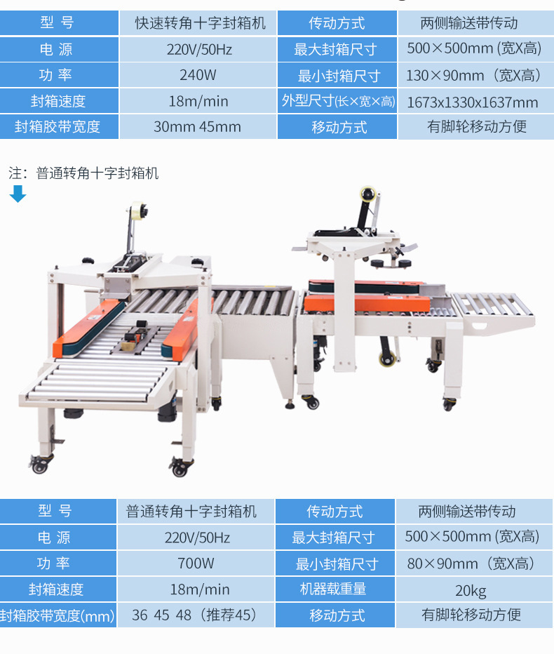 輸送系統:和一字封箱機類似,包括輸送帶和動力滾輪。輸送帶將紙箱輸送到封箱位置,動力滾輪提供動力。輸送帶的材質要有足夠的摩擦力,以確保紙箱在輸送過程中不打滑。同時,輸送系統的速度是可以調節的,以適應不同的生產效率要求。