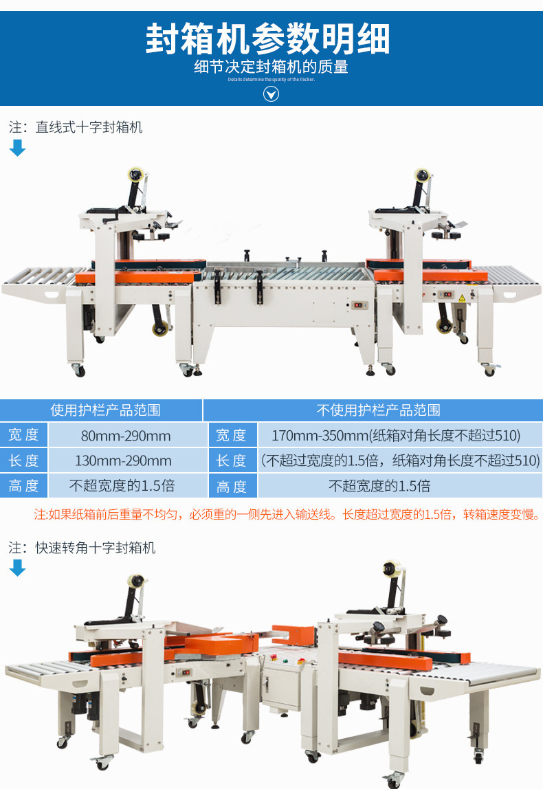 旋轉或轉向機構:這個機構是十字封箱機特有的部分。它的作用是改變紙箱的位置或者膠帶粘貼的方向,使得能夠在垂直方向進行封箱。有些機器是通過旋轉整個紙箱來實現的,這種方式對紙箱的定位要求較高;有些機器則是通過改變膠帶粘貼頭的方向來完成十字封箱,相對來說機械結構更復雜,但對紙箱的適應性可能更好。
