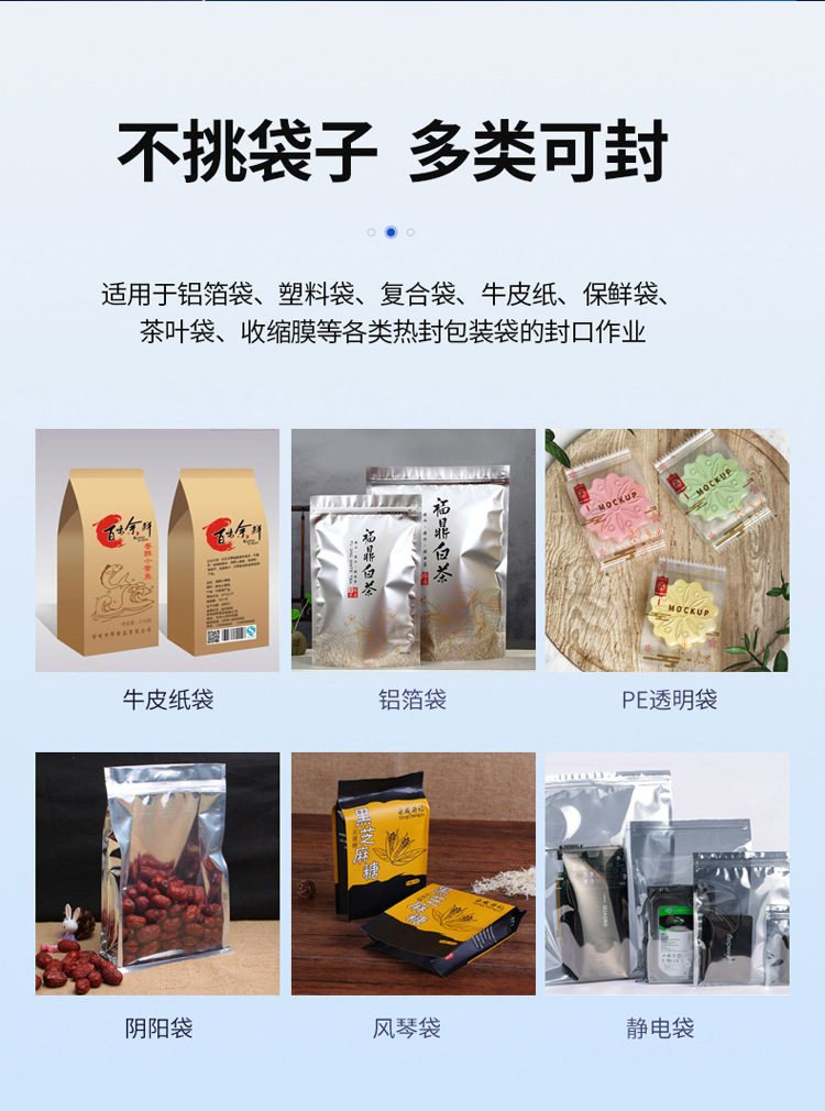 封口質(zhì)量可靠:采用先進的熱封技術和精確的溫度控制,確保封口牢固、密封性能好,能有效防止產(chǎn)品泄漏、變質(zhì)等.