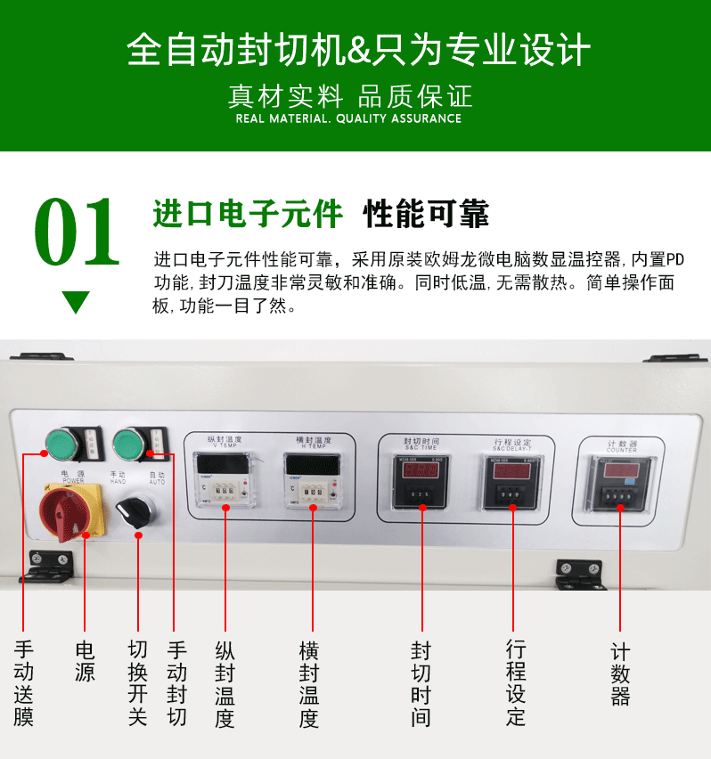 - 由于采用了精密的控制系統和高質量的封切系統,全自動封切機能夠保證封切的精度和質量。封切的位置準確,封口牢固、美觀,包裝后的產品外觀整齊。