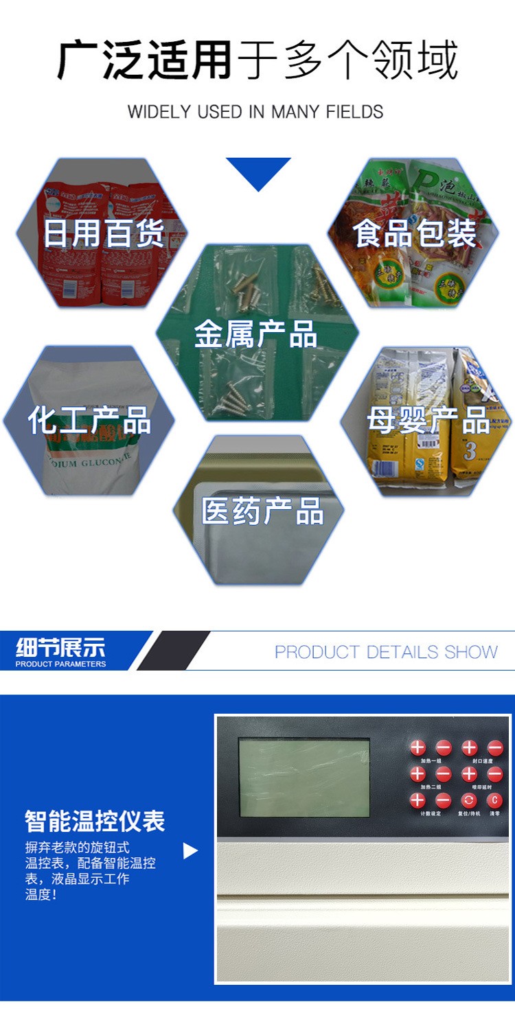 - 日化用品包裝的得力助手:在日化行業(yè),對于洗發(fā)水、沐浴露等產(chǎn)品的包裝袋或紙盒封口也有很好的應(yīng)用。例如,在洗發(fā)水的生產(chǎn)線上,大型立式連續(xù)式封口機(jī)可以與灌裝機(jī)等設(shè)備配合,將灌裝好的洗發(fā)水包裝進(jìn)行封口,提高整個(gè)生產(chǎn)線的效率,確保產(chǎn)品包裝的質(zhì)量。