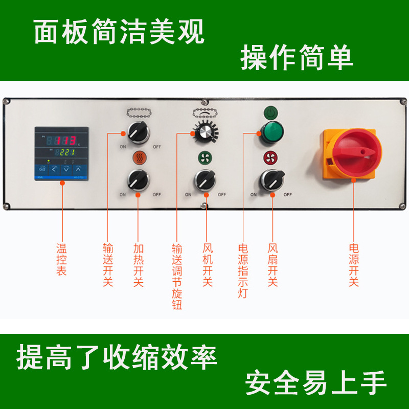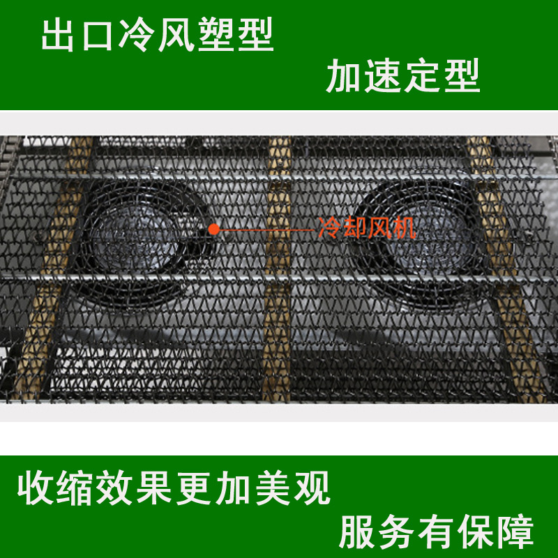 熱收縮通道:是產(chǎn)品進行熱收縮的區(qū)域,內(nèi)部設(shè)置有加熱元件和循環(huán)風機,使熱空氣在通道內(nèi)均勻流動,確保 PE 膜受熱均勻,收縮效果一致 。