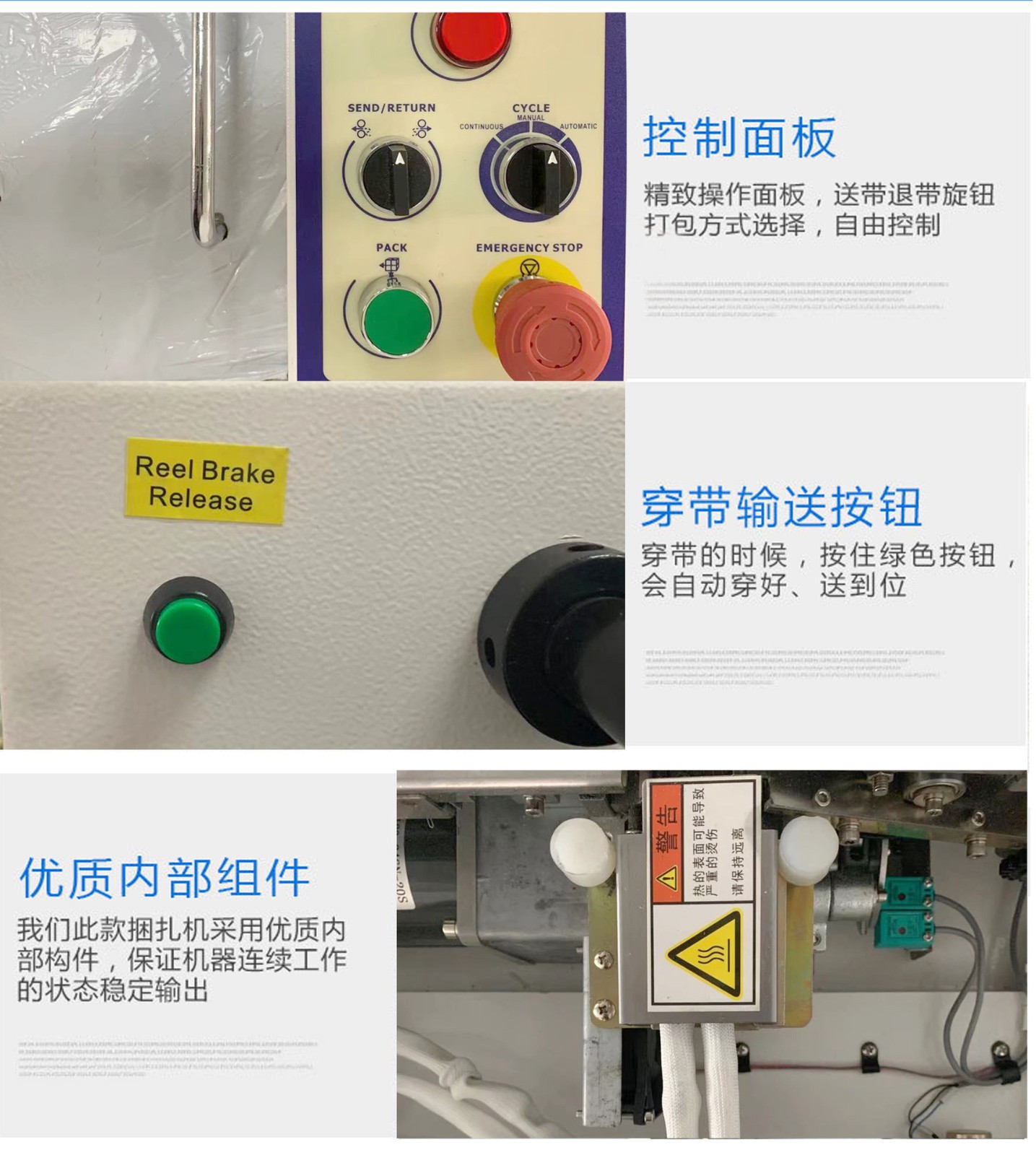 - 在機(jī)械制造企業(yè)中,各種零部件需要進(jìn)行整理和包裝后才能運(yùn)輸或存儲(chǔ)。自動(dòng)捆扎機(jī)可以用于捆扎小型的機(jī)械零件,如螺栓、螺母、墊圈等。這些小零件可以先按照一定的數(shù)量或規(guī)格組合在一起,然后用自動(dòng)捆扎機(jī)使用塑料打包帶進(jìn)行捆扎。對(duì)于大型的機(jī)械部件,如發(fā)動(dòng)機(jī)缸體、機(jī)床床身等,鋼帶自動(dòng)捆扎機(jī)能夠提供足夠的強(qiáng)度來(lái)確保這些重型部件在搬運(yùn)過(guò)程中的穩(wěn)定性。