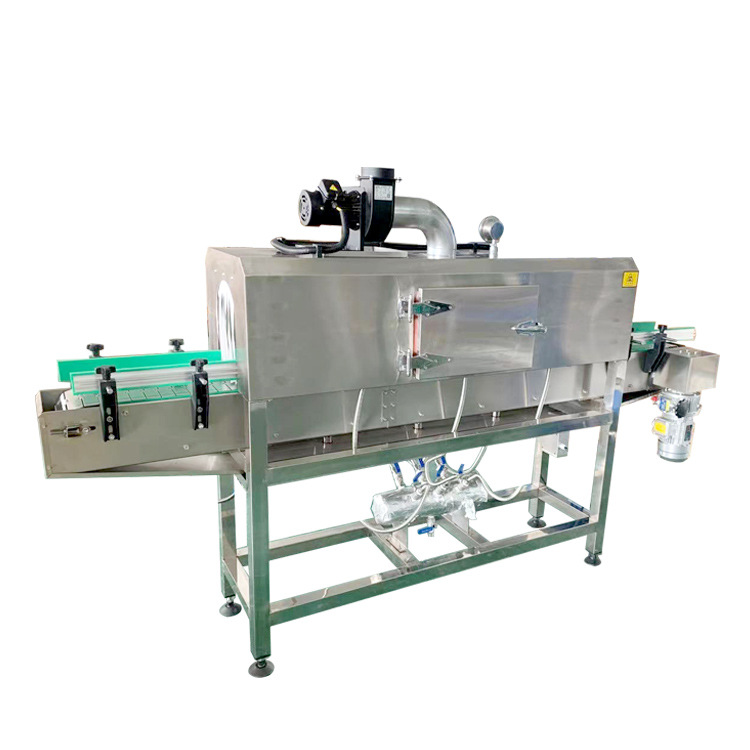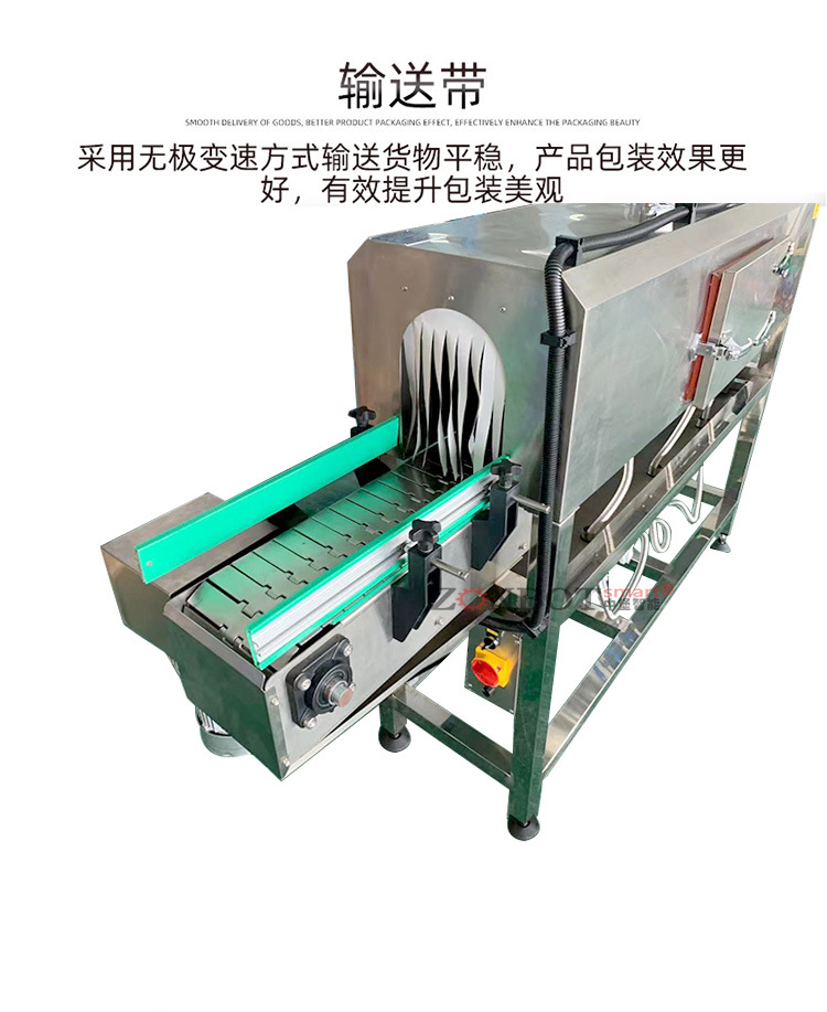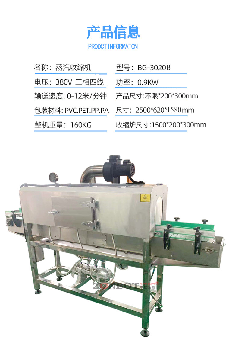 - 蒸汽收縮機:通常有主副 2 個加熱器,可調節功率,輸送帶無級調速。有三層隔熱和防水設計,多采用不銹鋼 304 制造。兩側噴管可多角度調整,前后有進出口護罩,下部有接水盤4。