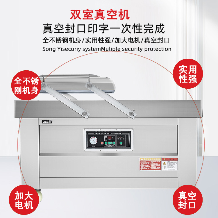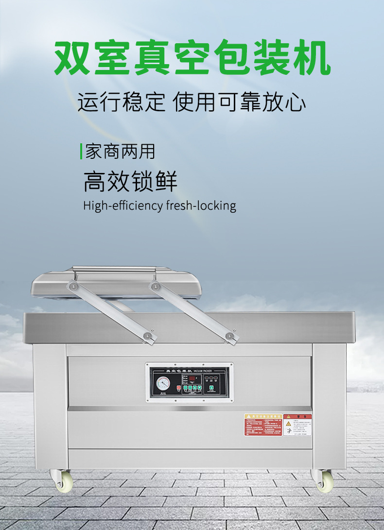 反觀雙室真空包裝機(jī),設(shè)有左右兩個真空室。當(dāng)其中一個真空室處于抽真空、熱封等包裝作業(yè)階段時,操作人員可同步在另一個真空室進(jìn)行產(chǎn)品放置與整理。待一側(cè)完成包裝流程,上蓋切換至另一側(cè),之前準(zhǔn)備好的真空室立即開始工作,實現(xiàn)無縫銜接。以同樣包裝小型食品為例,雙室真空包裝機(jī)能夠在 15 秒左右完成一次包裝,效率大幅提升。這種交替式工作模式,避免了單室機(jī)型頻繁開關(guān)蓋及產(chǎn)品裝卸所浪費的時間,顯著提高了單位時間內(nèi)的包裝產(chǎn)量,為企業(yè)擴(kuò)大生產(chǎn)規(guī)模、提升市場競爭力提供了有力支撐
