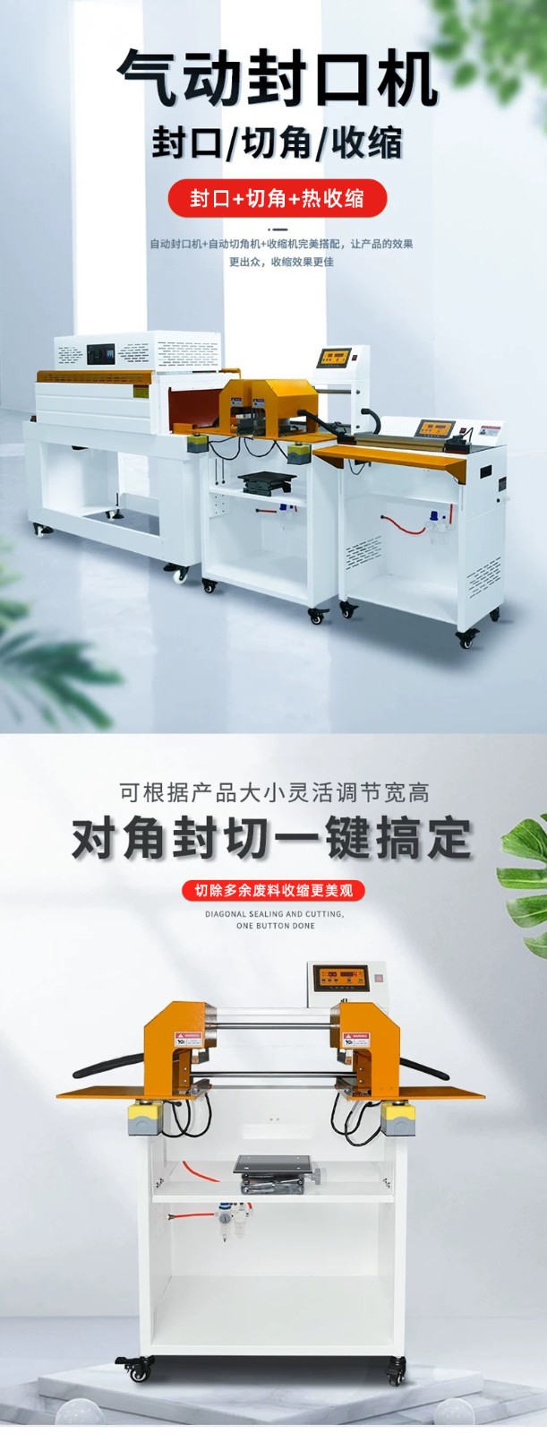 氣動封口切角熱收縮機自動化程度高,能連續完成物料的輸送、套膜、封口、切角及熱收縮等一系列包裝工序,極大提高包裝效率。