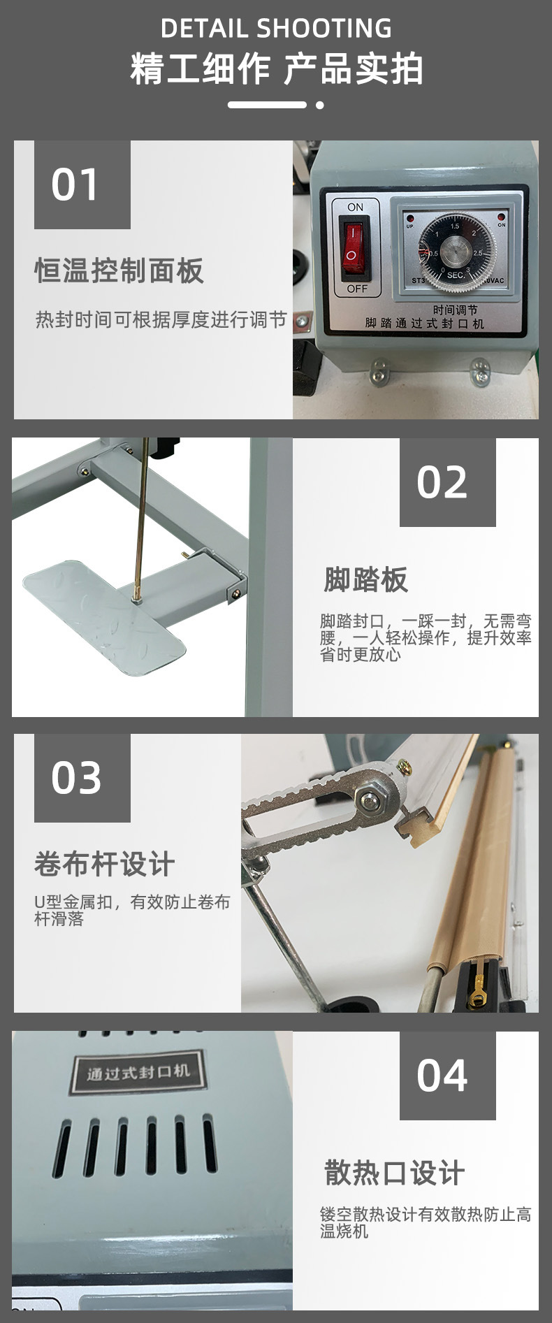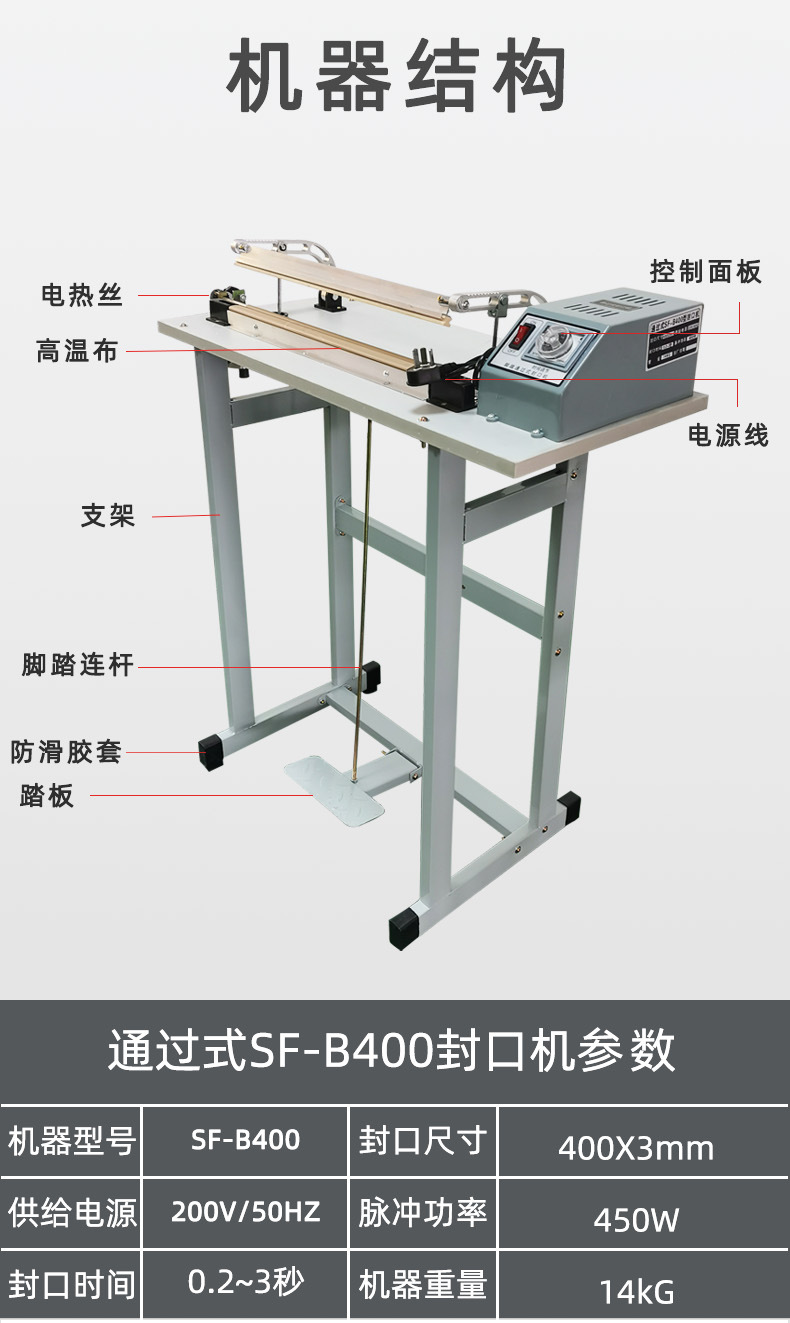 - 壓力不足:腳踏施加的壓力不夠,或者機器的壓力調節裝置出現問題,導致封口處的薄膜沒有被緊密壓合。