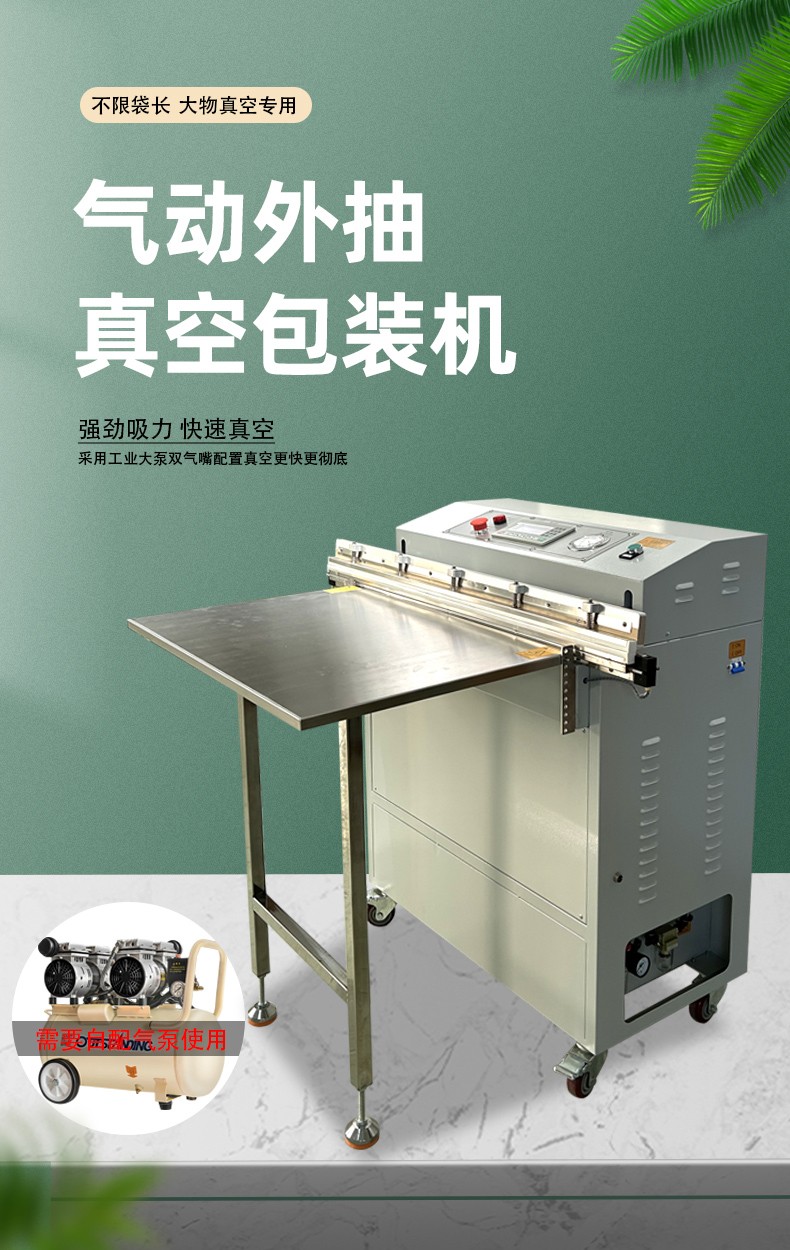 - 氣源條件5:氣動(dòng)外抽真空包裝機(jī)需要?dú)庠磥眚?qū)動(dòng)氣動(dòng)元件,因此要確保使用場(chǎng)所具備穩(wěn)定的氣源。如果是在工廠、車間等有氣源的地方使用,則選擇氣動(dòng)的較為合適;如果是在辦公室等沒有氣源的地方使用,則可以考慮選擇電動(dòng)真空包裝機(jī)。