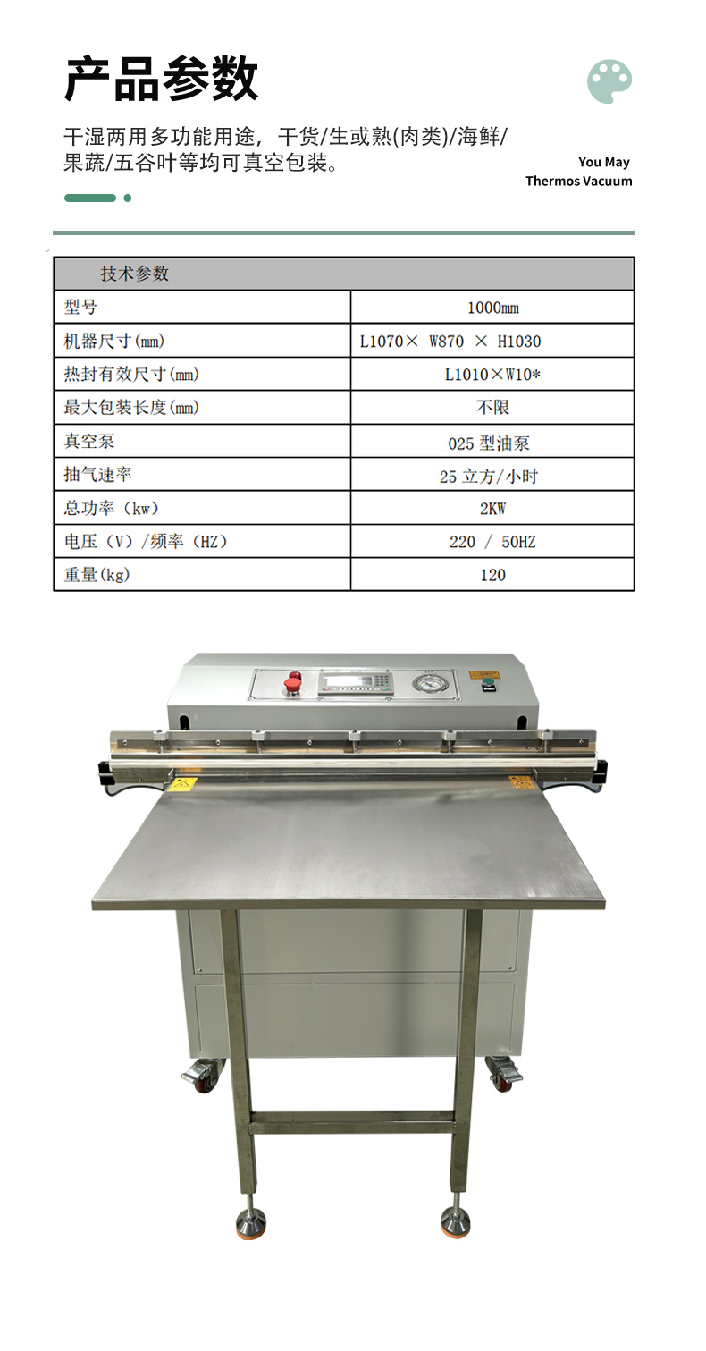 - 產(chǎn)品類型:不同的產(chǎn)品對(duì)包裝有不同的要求。如食品中的海鮮、水果、茶葉等,需要真空包裝以防止氧化變質(zhì)、延長(zhǎng)保質(zhì)期;電子產(chǎn)品則主要是為了防潮、防氧化變色。如果產(chǎn)品是液體或含有液體,要選擇具有防漏功能的包裝袋,并且機(jī)器的封口處需能確保密封4。對(duì)于形狀不規(guī)則或特大件的物品,外抽式真空包裝機(jī)更為適合,因其不受被包裝物尺寸的限制。