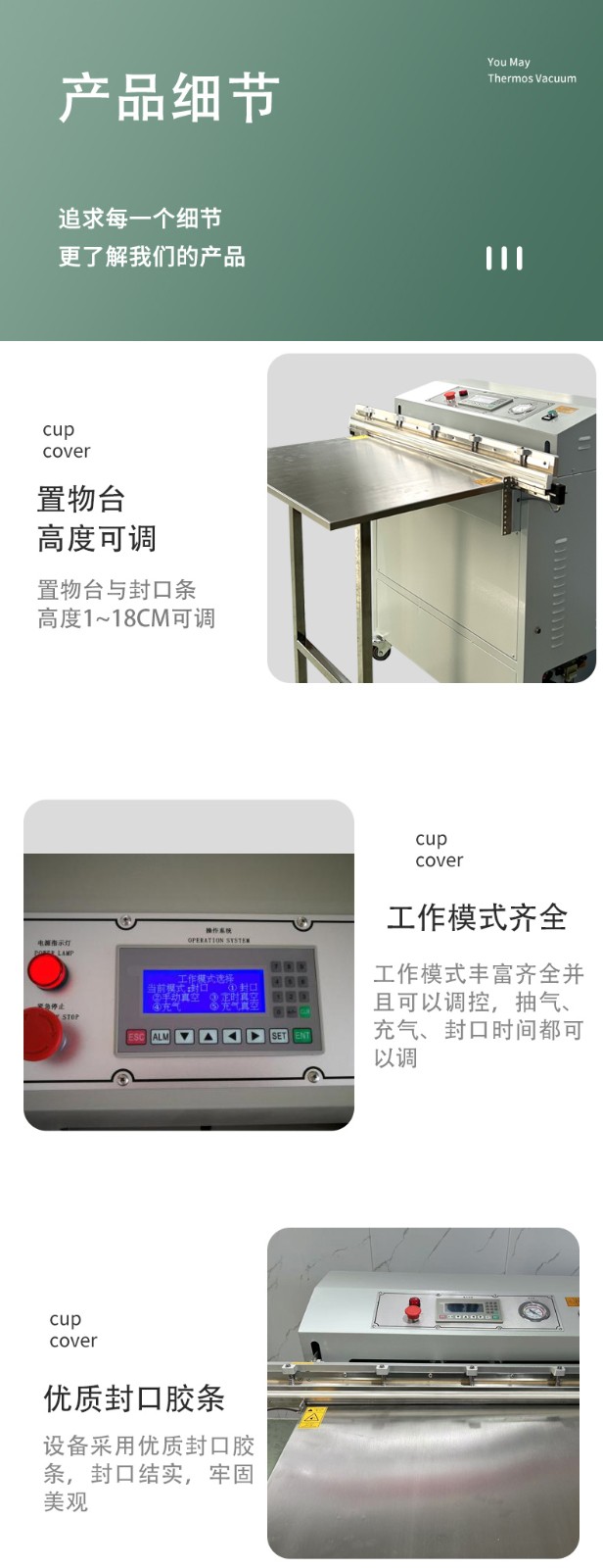 - 真空度要求:不同產(chǎn)品對(duì)真空度的要求不同。一般來說,食品、電子產(chǎn)品等需要較高的真空度,以更好地保護(hù)產(chǎn)品。通常氣動(dòng)外抽真空包裝機(jī)的真空度可達(dá)到 - 0.1MPa 左右,但在選擇時(shí)還是要根據(jù)產(chǎn)品的具體需求來確定。