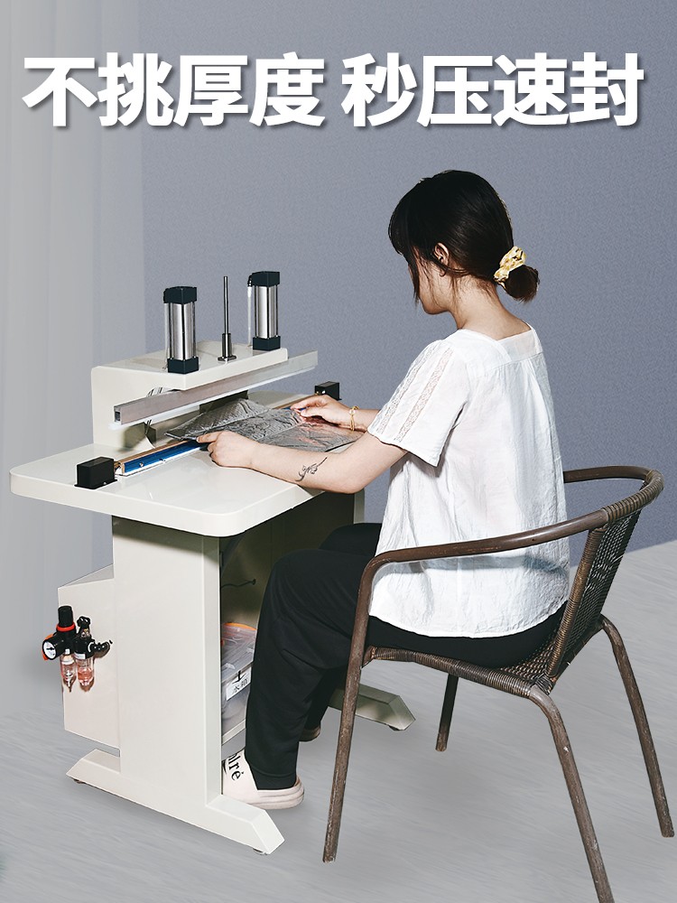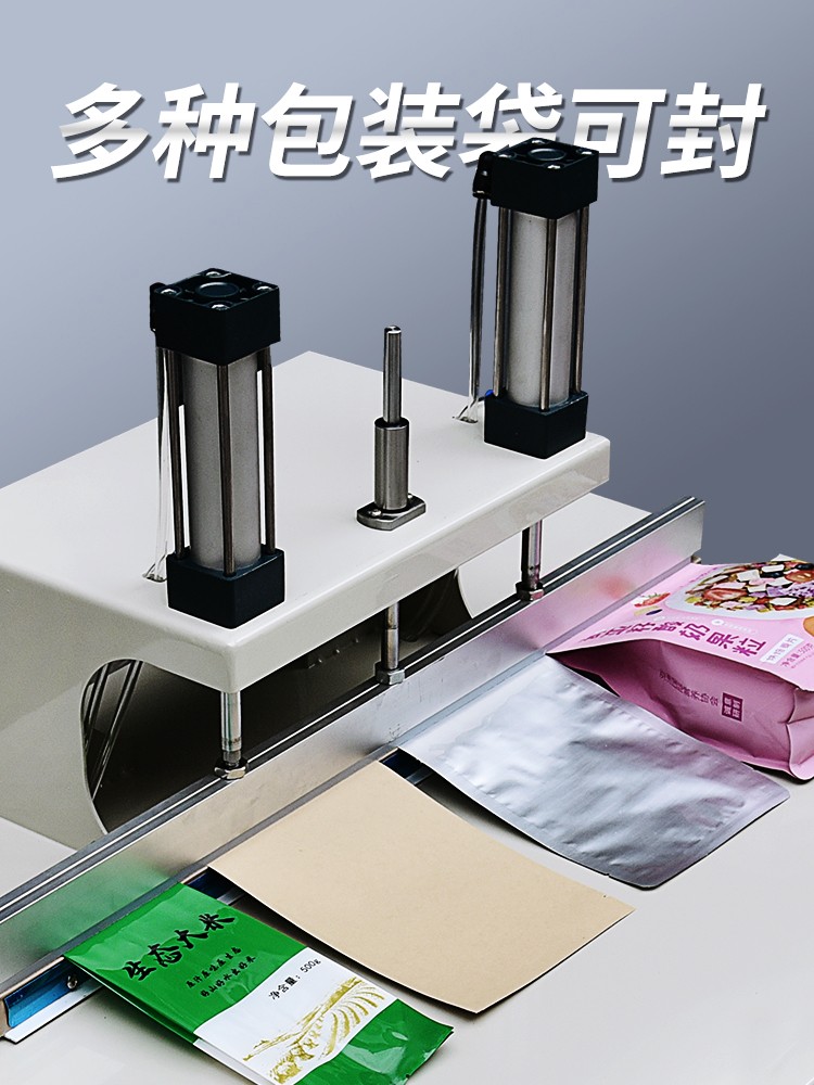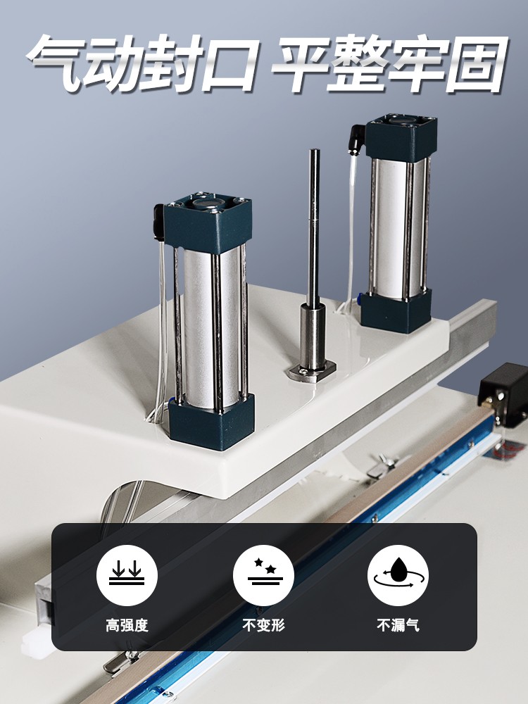 • 氣動水冷封口機:采用氣動系統作為動力源,通過壓縮空氣驅動氣缸帶動壓板進行封口操作。這種動力方式能夠提供較為穩定且較大的壓力,保證封口時壓板對包裝材料的壓合力度均勻一致。