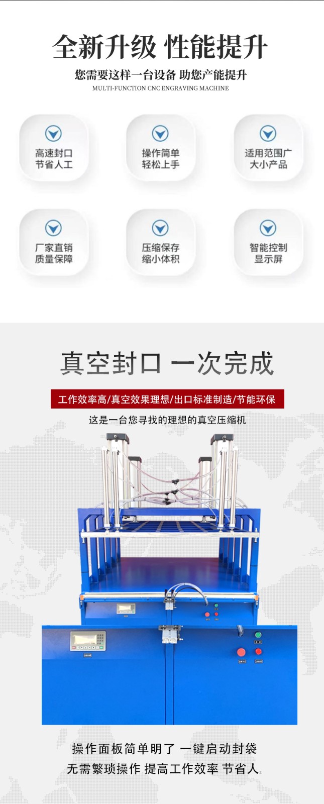 - 選擇場地:將真空壓縮封口包裝機放置在平穩、干燥、通風良好的水平臺面上,周圍要留出足夠空間,以便操作和維護,同時確保附近有合適的電源插座。