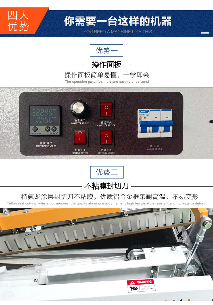 切熱收縮機在產品包裝中應用廣泛,具有包裝效果好、效率高、適用范圍廣等優勢,但也存在設備成本高、維護復雜、能耗較大等劣勢。具體分析如下: