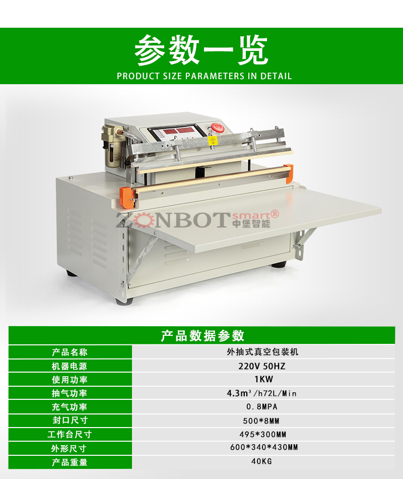 臺式外抽真空包裝機適用于食品、電子、醫藥、工具、百貨等多個行業,可對布料、棉羊毛制品、海鮮、水果、茶葉、鹽漬物品、豆制品、電子產品、金屬加工件等多種物品進行真空包裝