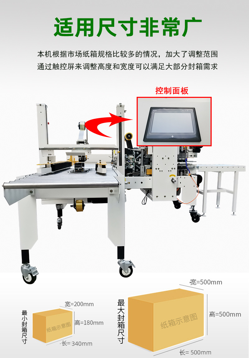 主要適用于紙箱的封箱包裝,既可單機作業(yè),也可與流水線配套使用,它可單箱作業(yè),也可與紙箱成型開箱機、裝箱機、貼標機、捆包機、棧板堆疊機、輸送機等設備配套成包裝流水線使用,為包裝流水線作業(yè)必須的設備。封箱機為錦岸代理產(chǎn)品主要分為:自動拆蓋封箱機系列,氣動調(diào)整封箱機系列,自動封箱機系列,邊角式封箱機系列,四角邊封箱機,工字型封箱等,封箱方式可分為:上下驅(qū)動,左右驅(qū)動,側(cè)邊,角邊等,一般采用透明膠帶以及牛皮紙材料。