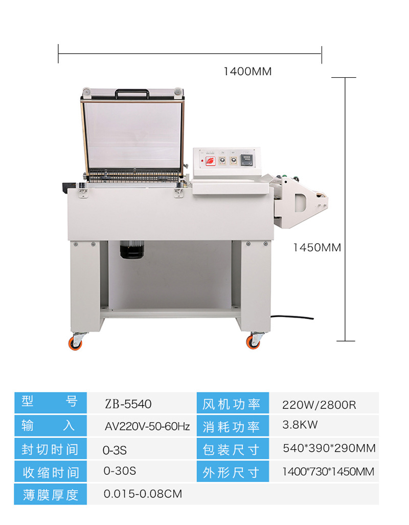 FM5540二合一熱熱收縮機可以根據不同的生產速度來調節設備功率的大小