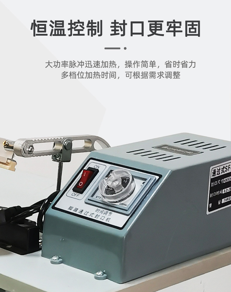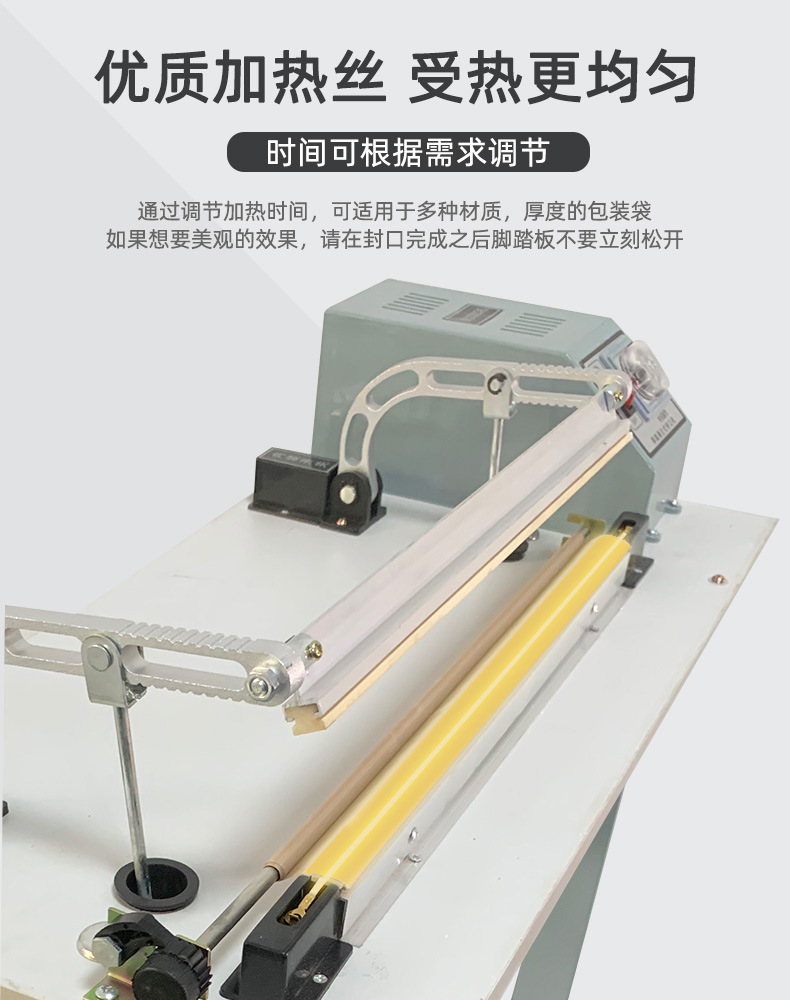 腳踏封口機是一種理想的封口設備,?適用于各種塑料袋薄膜的封口及制袋。?它特別適用于醫藥、?農藥、?食品、?日化、?潤滑油等行業的鋁箔袋、?塑料袋、?復合袋的封口。?這種設備利用電氣脈沖技術,?能夠顯著縮短封口時間,?從原來的2-4秒縮短至0.2秒,?具有投資少、?效益高、?封口長度長、?操作簡單等特點。?因此,?腳踏封口機被廣泛應用于食品、?醫藥、?土特產、?電器軟件、?工廠、?商店、?服務行業等領域,?成為這些行業中不可或缺的封口設備