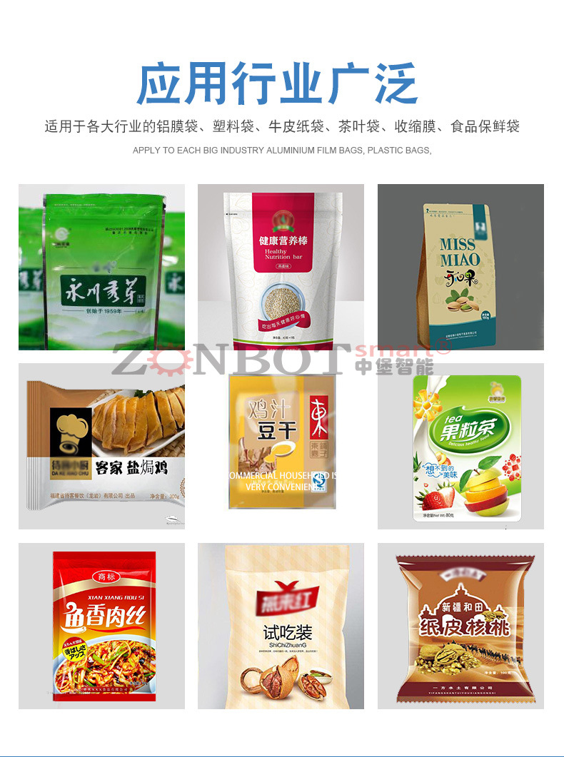 適用于所有塑料袋薄膜封口及制袋,是食品廠,化妝品廠,藥廠等單位的理想封口設備。適用范圍 適用于醫藥,農藥,食品,日化,潤滑油等行業的鋁箔袋,塑料袋,復合袋理想封口機械。