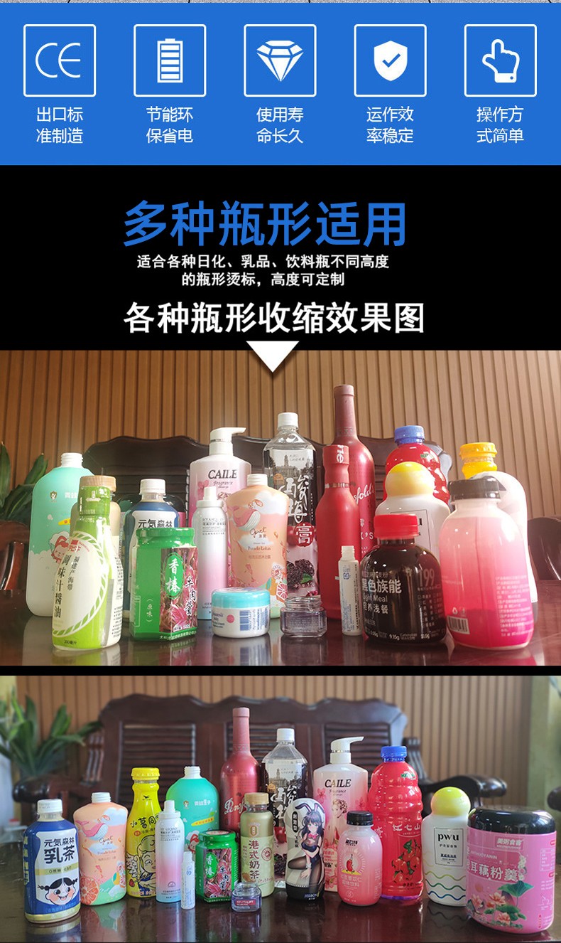 - 日化行業(yè):洗發(fā)水、護膚品、洗衣液的集合式收縮打包