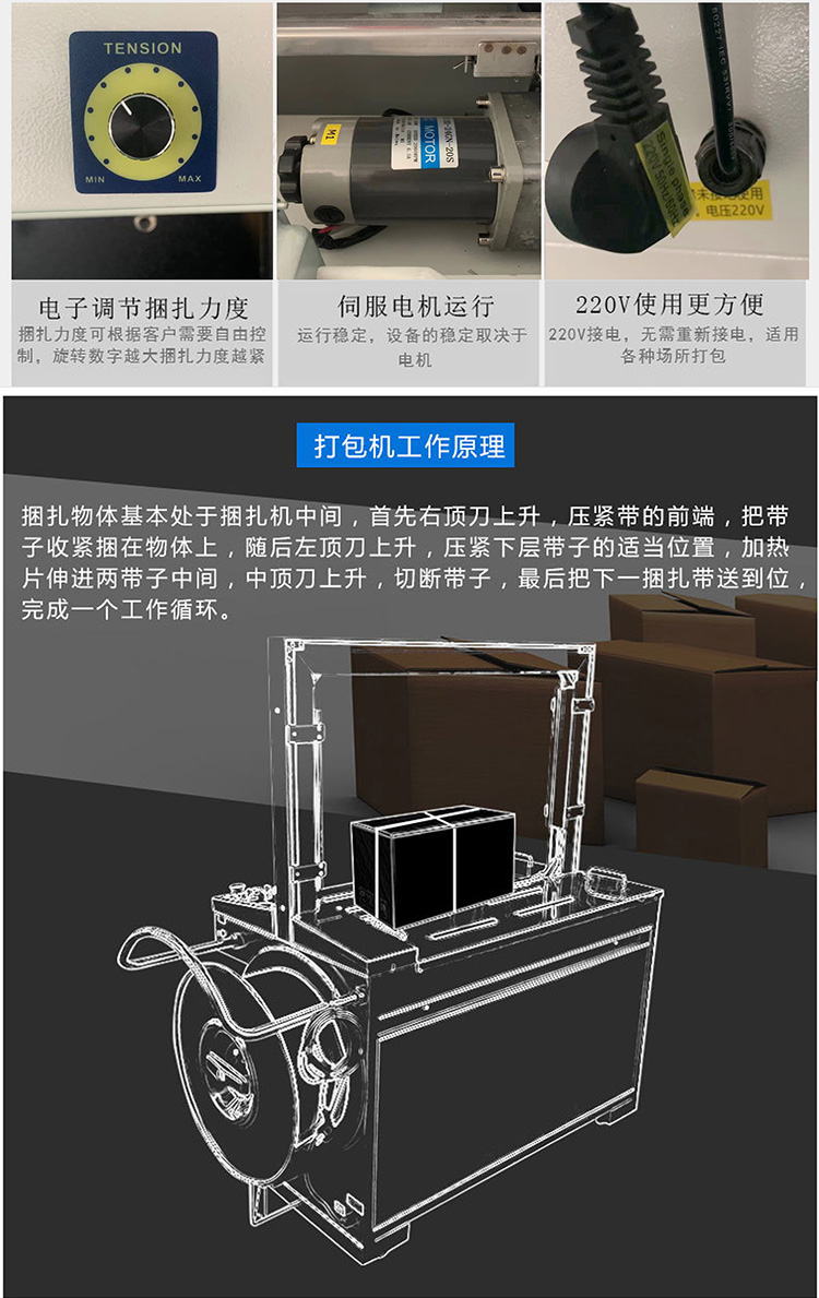 MH-301A全自動(dòng)免扣式打包機(jī)電商快遞專用pp帶紙箱捆扎配套封箱機(jī)